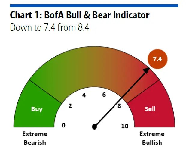 美银牛熊指标已从8.4大幅回落至7.4,为2025年7月以来最低水平,标志着始于去年12月17日的卖出信号正式结束。