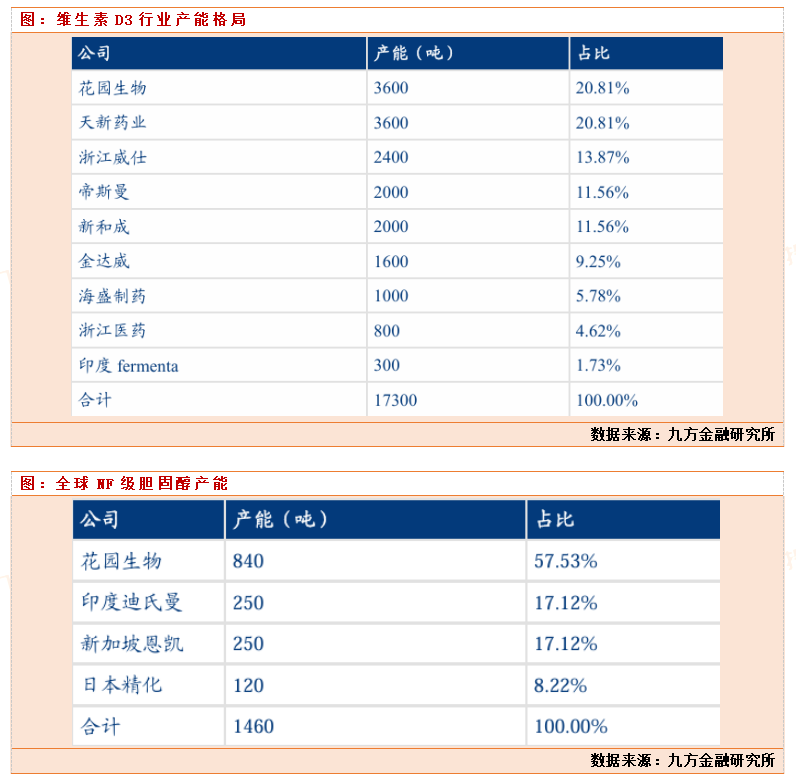 目前在所有维生素D3的生产商中,仅花园生物具有NF级胆固醇,国内其他公司需要向其采购原材料才能完成产品的生产。