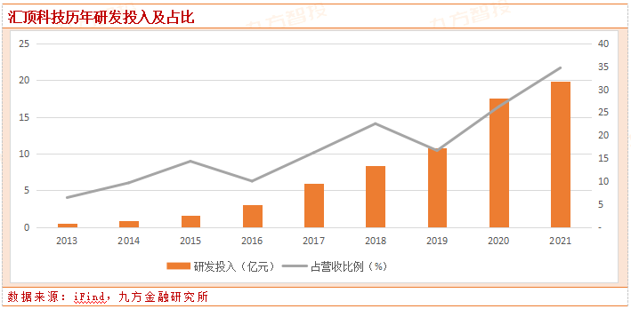 经我们梳理,2019-2021年,公司研发投入分别达到10.79亿元、17.54亿元、19.82亿元,占营收比例分别为16.67%、26.23%、34.7%。根据公司2022Q3财务报告,2022年前三季度公司研发投入依然达到17.88亿元,占营收比例达到70.9%,占比提升主要系营收下滑所致。不过从绝对额上来看,公司依然坚持高强度的研发投入。