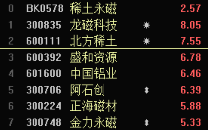 从个股来看,北方稀土盘中一度触及涨停,龙磁科技大涨逾8%,盛和资源、正海磁材、金力永磁涨超5%。11月以来,多只个股已涨超30%。其中,龙磁科技涨39%,北方稀土涨36%,盛和资源涨34%,五矿稀土涨30%。