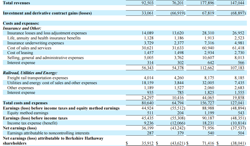 伯克希尔二季度营收和净利润双双超出市场预期。