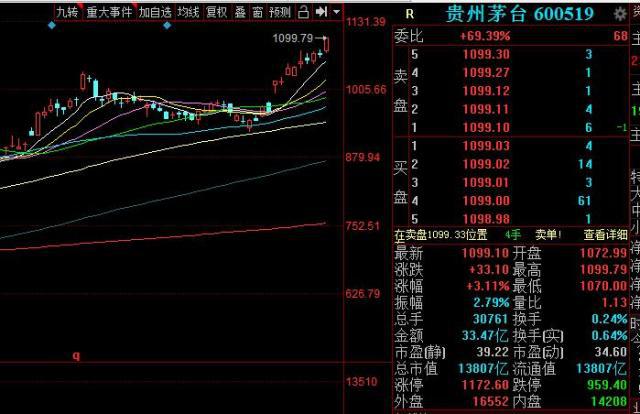 在站稳千元大关之后,贵州茅台继续稳步上攻,今日茅台小幅高开后一路上攻,截至发稿最高触及1104,突破1100元关口。