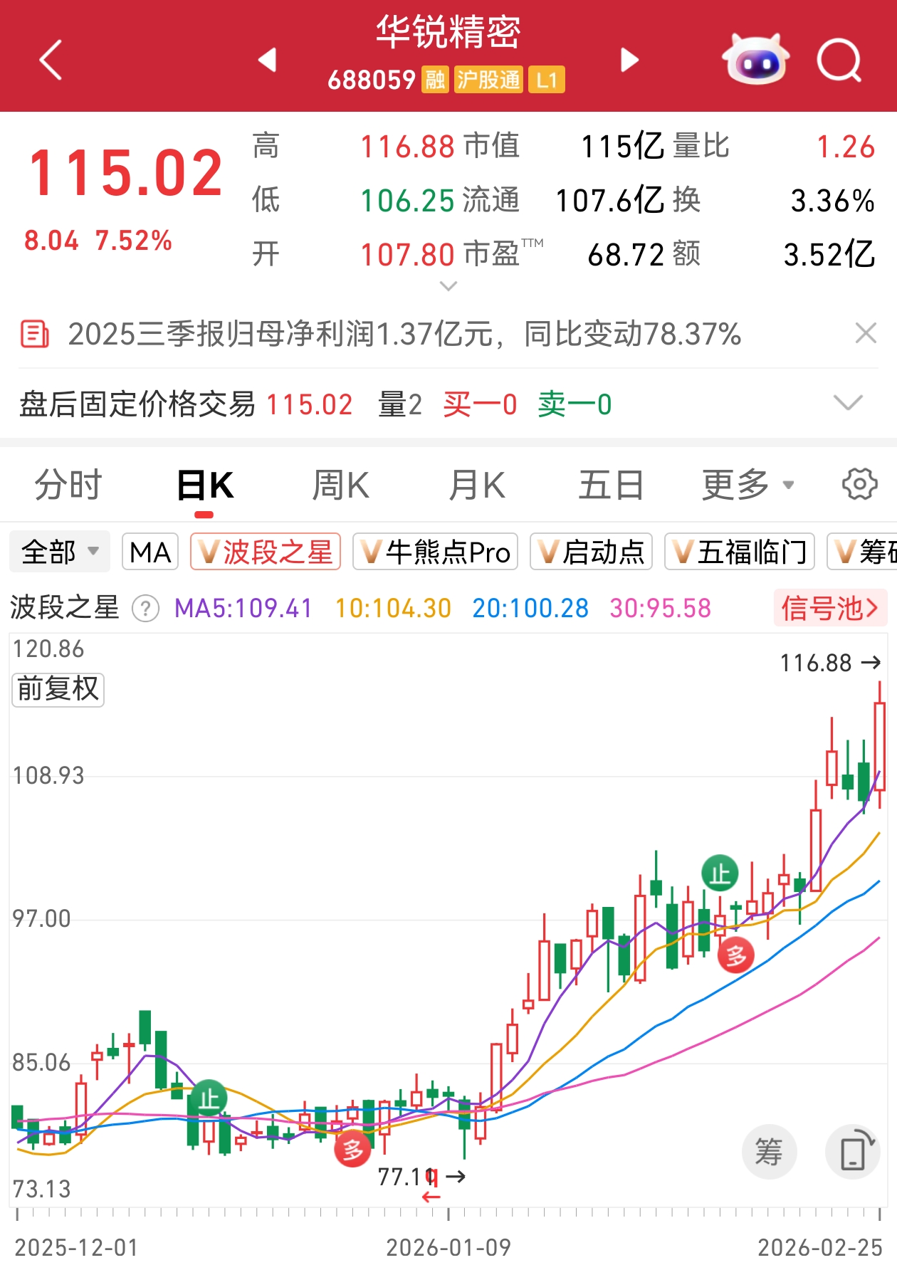 注:“波段之星”显示,华锐精密在2026年2月4日出现“多”信号!