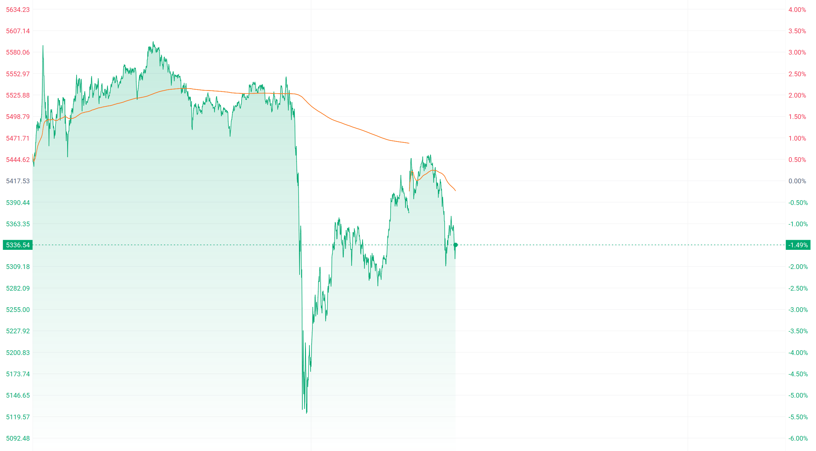 消息方面,现货黄金于周四美盘时段止跌回升,部分收复前一交易日创下的逾300美元历史最大单日跌幅,但当日仍收报5370.87美元/盎司,微跌0.85%;截至发稿,小幅回落0.29%至5362.31美元/盎司。