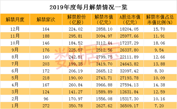 此前的10月和11月均是A股解禁压力较大的月份,其解禁市值分别为3112.44亿元和3094.97亿元。
