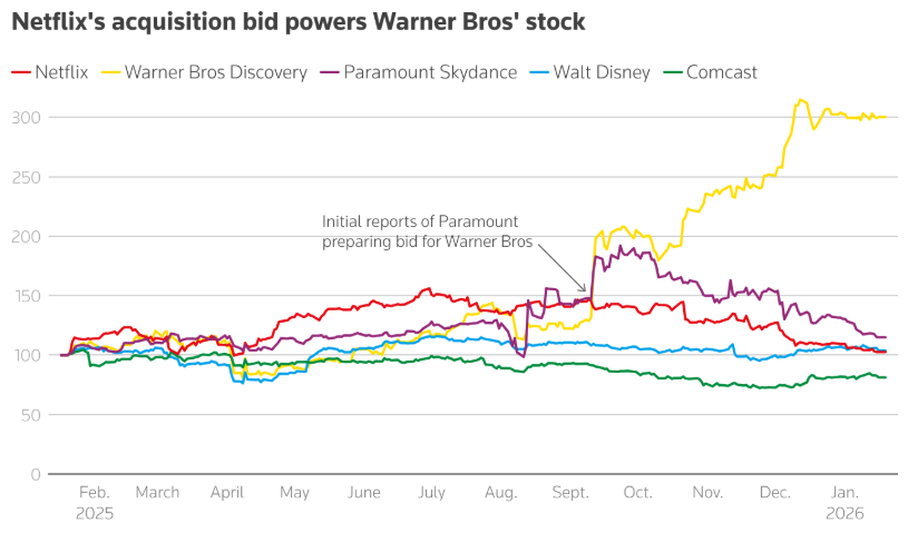 该公司正努力抵御派拉蒙天舞公司(PSKY.US)的恶意竞购,并计划出售其工作室和其他娱乐资产。由科技巨头大卫·埃里森领导的派拉蒙天舞公司则提出以每股 30 美元的现金收购华纳兄弟的所有业务(包括电视网络)。