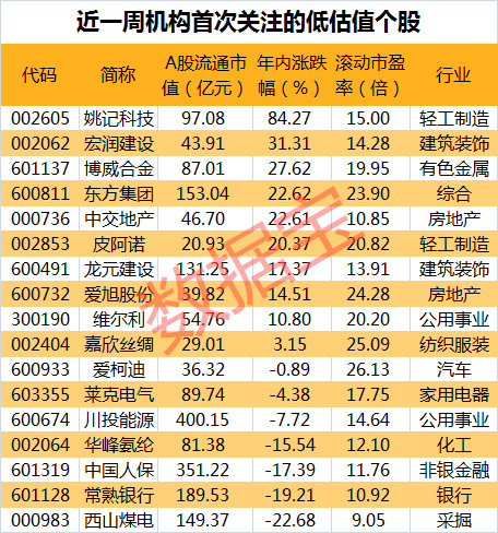 从估值角度看,近一周机构首次覆盖评级的公司中,有17家公司滚动市盈率不足30倍。皮阿诺最新滚动市盈率为20.8倍,有2家机构首次覆盖,公司主要产品有中高端定制橱柜、衣柜、木门等木作三大件及其配套家居,华创证券认为,家具行业竞争激烈,具有大宗业务的公司优势明显,皮阿诺公司2019年的大宗业务占比为45.05%,位居定制家具行业前列,未来收入业绩有望稳定增长。