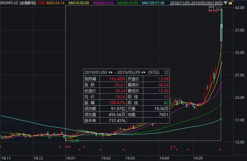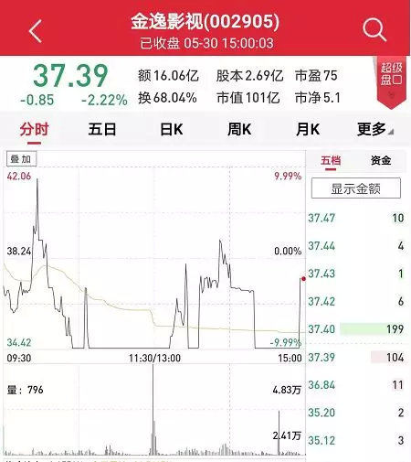 30日,金逸影视不仅走势诡异,成交量也是创下上市以来新高。平常20万手以下的成交量,今天创下45.72万手的天量成交量。