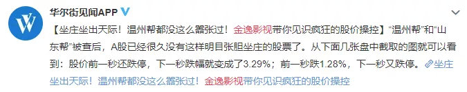 但是网友最关心的是,是不是有庄家在操控股价?自媒体华尔街见闻甚至表示,温州帮都没有这么嚣张过!
