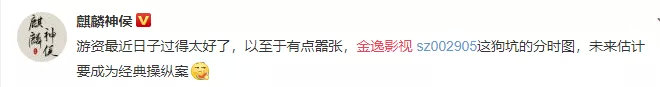 还有网友形容金逸影视的分时走势是付款条码,或是心率检测图。