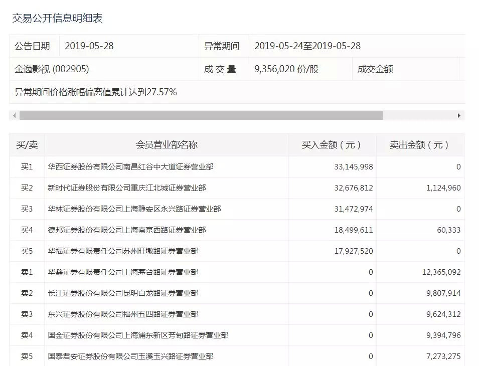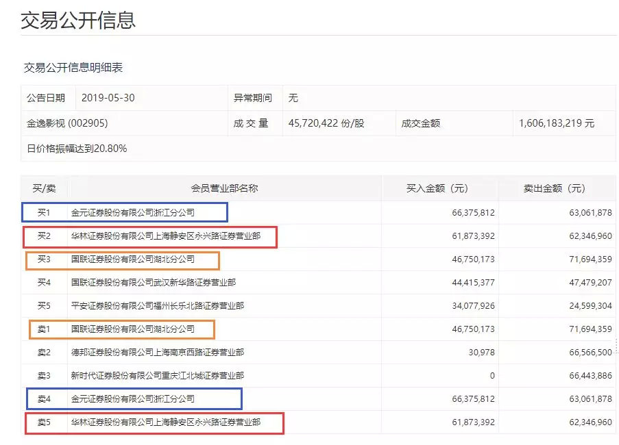 从30日的龙虎榜单上来看,金元证券浙江分公司、华林证券上海静安区永兴路证券营业部以及国联证券湖北分公司分别占据了前五大买卖席位中的三个席位。
