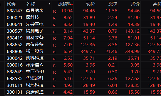 另外,先导基电、精测电子、耐科装备等多股盘中涨幅亦超过8%。