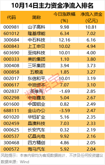 从个股看,21股获主力资金净流入超2亿元,10股净流入超3亿元。