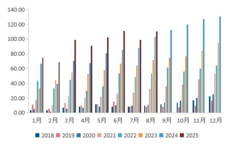 2024年我国汽车市场用铝量预估为425万吨,占比约9.5%,同比去年增幅8.5%;中汽协数据(2025年1-9月,我国新能源汽车累计销量达1122.8万辆,同比增长34.9%,占汽车总销量的46.1%。其中,9月单月销量达160.4万辆,创历史新高,同比增长24.6%,环比增长15%。单台新能源车消耗0.2吨左右。以中汽协官方预测销量(1600万辆)和行业平均单车铝用量(220kg)计算:总铝消耗量=1600万辆×220kg/辆=352万吨。2024年我国光伏市场用铝量预估为437万吨,占比约9.7%,同比去年增幅60.5%。据统计,光伏装机容量1GW对铝金属的使用量为1.9万吨。目前前三季度装机量超240Gwh,yoy+49%,2025年预计我国光伏装机总量达到330-380GW左右,预期消耗665万吨铝左右,占比超14%。