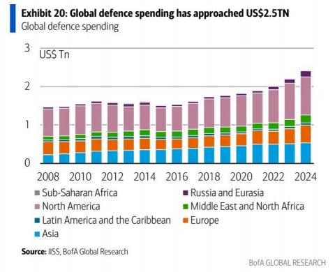 美银证券发布研报指出,随着世界愈发多极化,国防支出及其对金属需求的拉动正受到更多关注。国防支出正在上升,北约最新承诺将GDP的5%用于国防便凸显这一点。若支出更侧重于装备和基础设施而非人员(目前看来如此),则矿产将不成比例地受益。