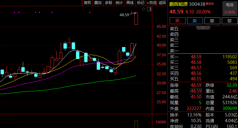 风电设备、光伏设备、动力电池回收、锂矿等板块也纷纷强势上攻,鹏辉能源高开后仅约1分钟就垂直20%涨停,格利尔则一度触及30%涨停,天原股份、德龙汇能、大中矿业等批量涨停。