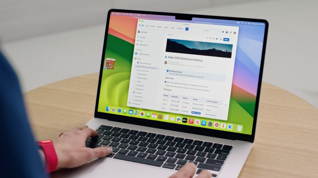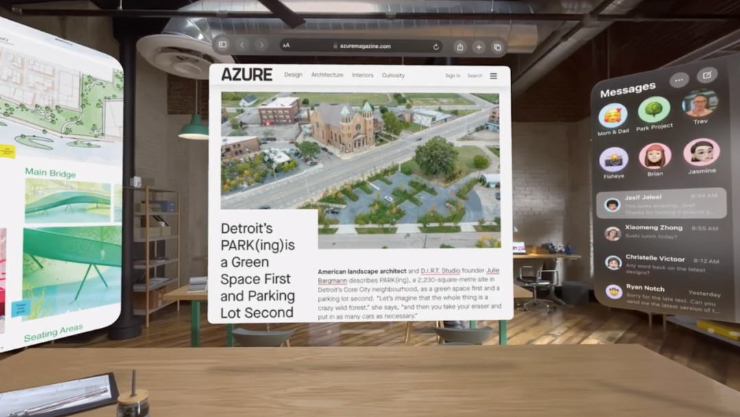除了娱乐功能之外,苹果还展示了Vision Pro在工作环境中的使用。Vision Pro能够投射一个类似于现代桌面的屏幕,以取代电脑显示器,用户可以使用键盘等设备打字。