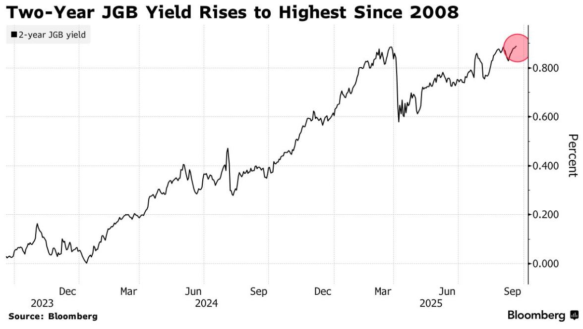 这一变动发生在日本央行周五政策会议前夕。市场普遍预期央行将维持利率不变,焦点集中于任何关于9月或12月行动的线索。短端收益率上扬的同时,长端收益率亦因通胀预期担忧升温而走高——当前日本政府正面临增加支出与减税的压力。