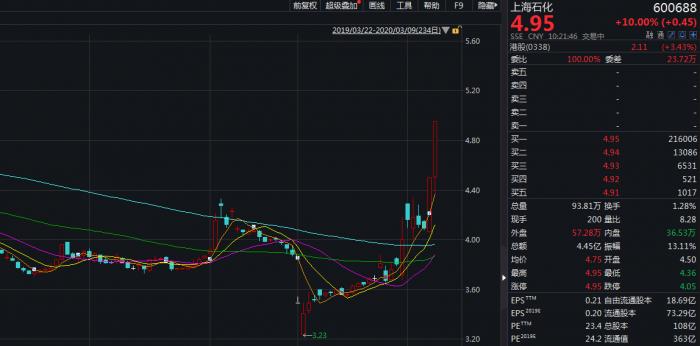 至发稿,上海石化大幅高开后涨停,恒力石化、恒逸石化两家炼化行业代表企业则下跌超过5%。