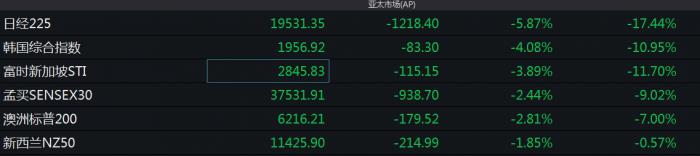 亚太市场同样未能幸免。至9日发稿前,日经225指数重挫近6%,韩国综指、新加坡STI指数均下跌4%左右。