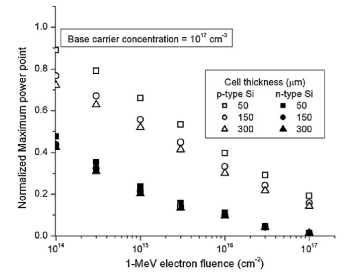 NASA 早期研究中指出,p型硅基电池在强辐射环境下相对n型硅基电池具备性能优势,经测试p型硅基电池耐受1MeV电子辐照的能力,最高可达n型硅基电池的10 倍;其对质子辐照的敏感度,也较n型硅基电池低3-8倍。