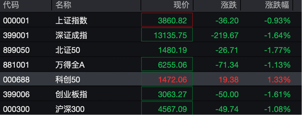 今天上午A股市场大幅低开,不过进入连续竞价阶段后,主要指数迅速收窄跌幅,其中科创50指数率先翻红。