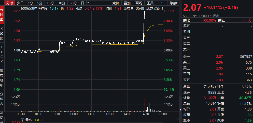 受到华晨集团破产重组消息刺激,华晨中国短线上扬,涨幅扩大至近10%,A股申华控股和金杯汽车纷纷涨停。
