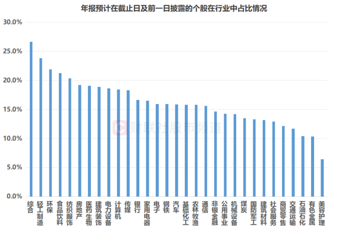 注:年报预计在截止日及前一日披露的个股在行业中占比情况(截至4月23日收盘)