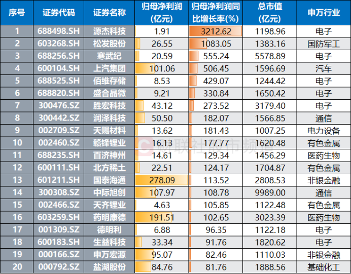10股净利千亿以上,16股增速超10倍