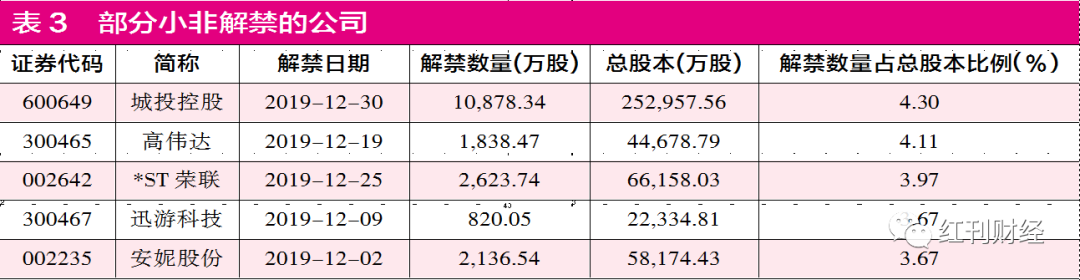 据记者统计,12月份A股中将有230.76亿股股份和2933.31.45亿元开始流通,这略为低于11月份的解禁潮的数据(295.81亿股和3094.97亿元)。这也就是说,11月份解禁潮的影响极有可能在12月份再次上演。
