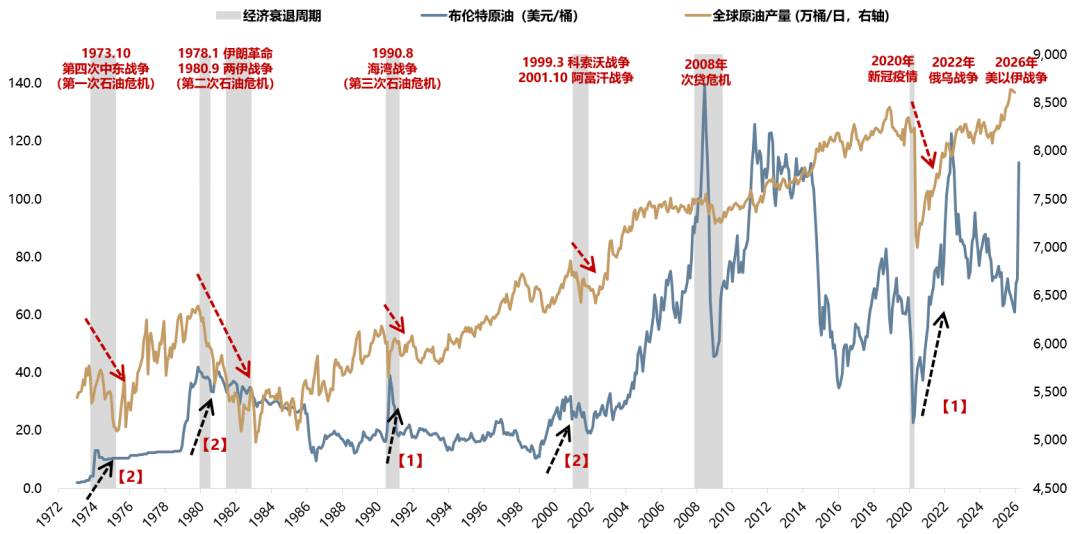 (3)若油价脉冲之后较长时间维持高位,需进一步讨论对通胀和需求的冲击程度,第一次石油危机是负面案例(进入滞胀期)、第二次石油危机是正面案例(战争冲击仅持续1个月)、科索沃战争也是正面案例(油价影响渐近式)。