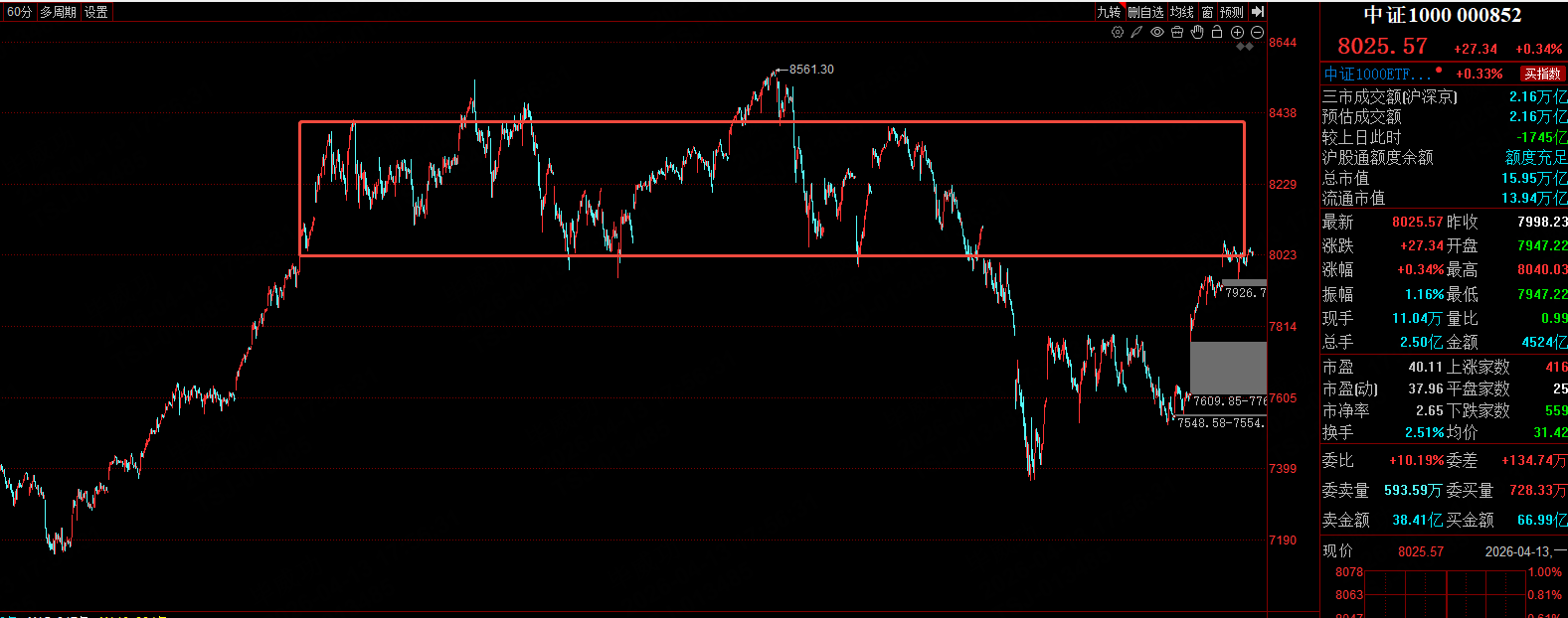 中证1000马上要回到前期平台支撑位了,一旦突破,接下来市场空间就彻底打开了。所以最近3天非常重要了,能不能突破决定了接下来4-5月份有没有行情给股民做。