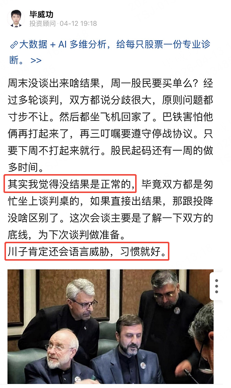周末的时候我就发了一个观点,在我的首页大家可以看到,我的观点很明确,谈不拢正常,回去跟各自的老大商量商量,改天继续谈。只要不真打起来,啥话都好说。