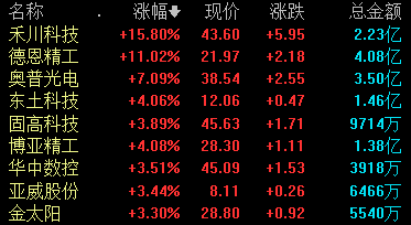 9月25日,工业母机板块走高,截至发稿,禾川科技涨超15%,德恩精工、奥普光电、东土科技等跟涨。