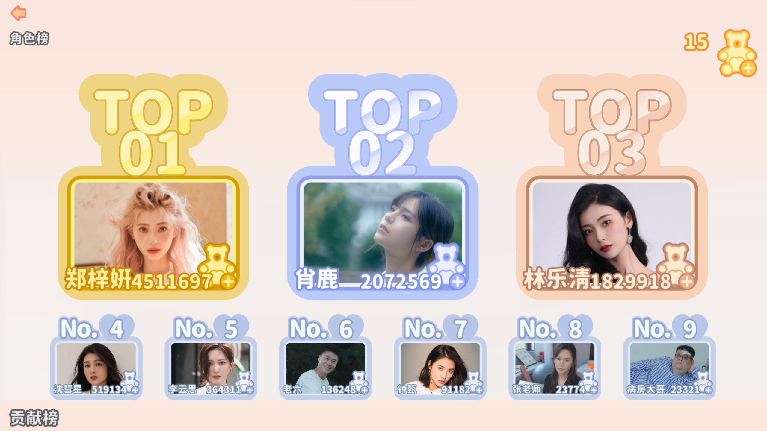 (《完蛋!我被美女包围了!》游戏内角色人气榜财联社记者截图)