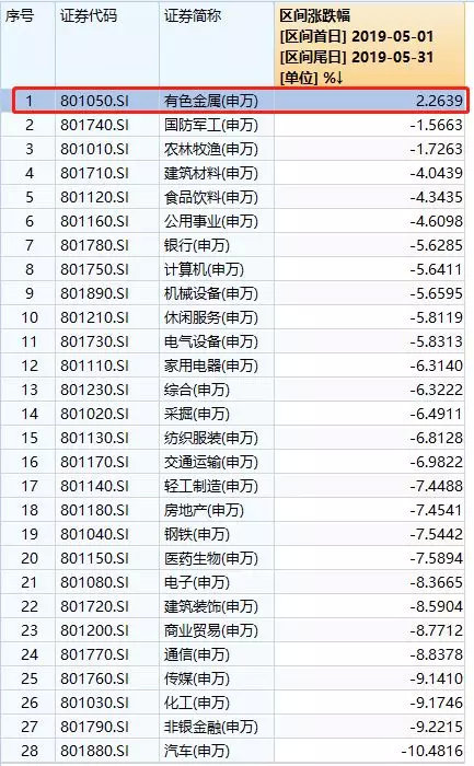 28个申万一级行业27个下跌,唯一上涨的有色金属行业,仅上涨2.26%;有色行业的逆势上证,得益于近期稀土板块的炒作。汽车行业跌幅最大,下挫10.48%;非银金融、化工、传媒三大行业跌幅也超9%。