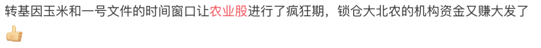 此外,有投资者表示,转基因玉米和一号文件的时间窗口让农业股“疯狂”了。