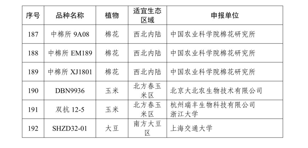 2019年12月30日,农业农村部科技教育司公告称,拟批准颁发192个植物品种的转基因安全证书,其中包括大北农的转基因玉米“DBN 9936”、杭州瑞丰/浙江大学的转基因玉米“双抗12-5”。公示期为15个工作日,至2020年1月20日截止。如无异议,两个转基因玉米有望获批安全证书。