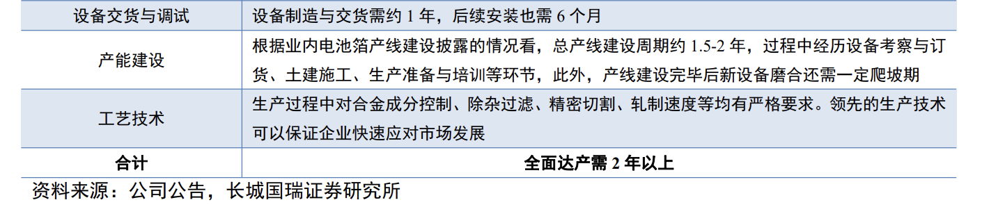 供给端:电池铝箔竞争格局稳定,行业扩产后需求紧张缓解3.1“设备+建设+认证”共筑行业壁垒