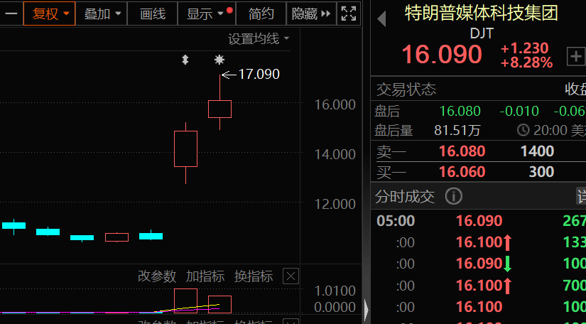 受消息刺激,12月18日特朗普媒体科技集团大涨近42%,单日涨幅创下2024年1月23日以来新高,12月19日该股继续大涨超8%。