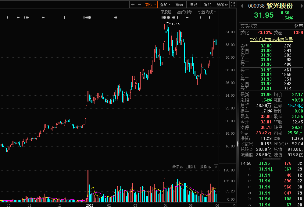 去年10月以来,紫光股份大涨101.45%,今年年初股价更是异常强势,2连板跳空后震荡上行,开启慢牛模式。