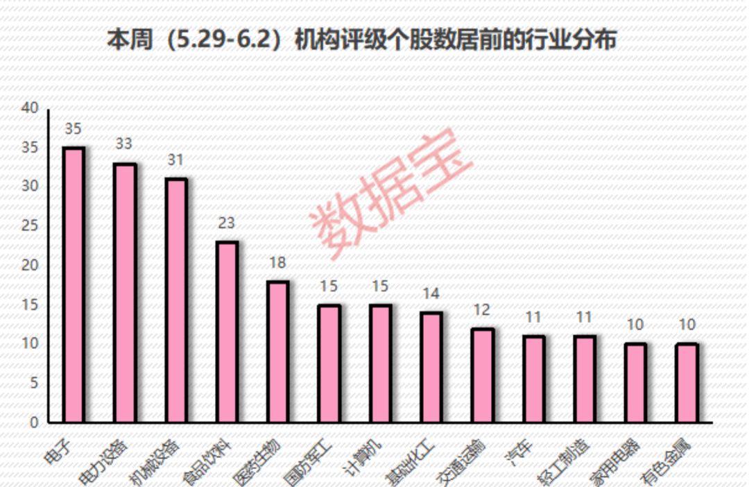 证券时报·数据宝统计,本周(5月29日至6月2日)61家机构合计进行413次评级,321股获“买入型”评级(包括买入、增持、强烈推荐、推荐)。
