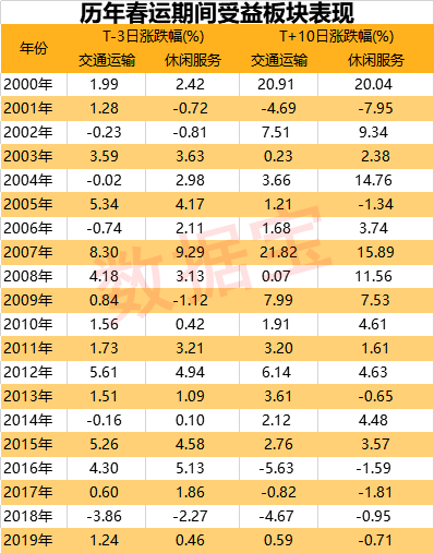 春运对于A股市场而言,最有望受到关注的自然是运输板块,其中铁路运输板块及航空运输板块尤为值得关注。另外,春节期间,休闲也将成为走亲访友之余消费的一大板块。