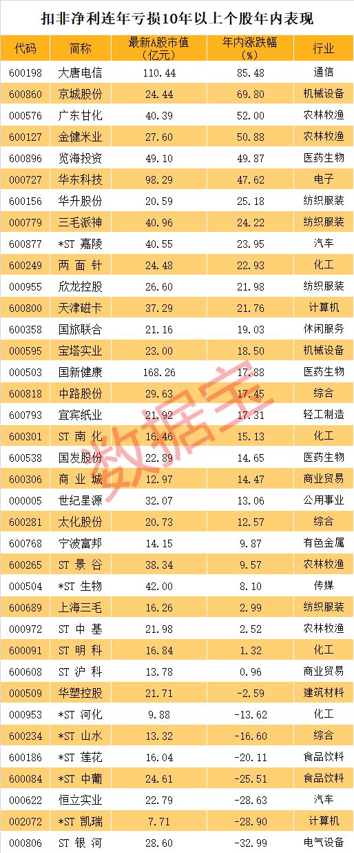 37家公司扣非净利连亏10年以上,其中竟有股票从未被ST(名单)