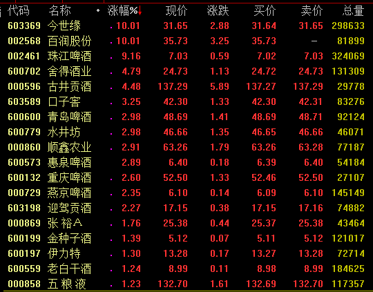 酒类股走势活跃 板块配置价值显现