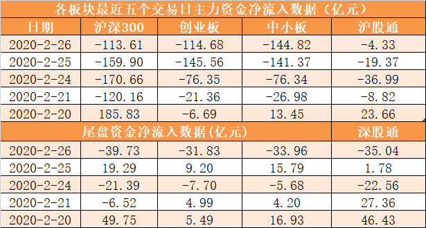 沪深300今日主力资金净流出113.61亿元,创业板净流出114.68亿元,中小板净流出144.82亿元。沪股通净流出4.33亿元,深股通净流出35.04亿元(本文中沪股通、深股通净流入额以当日已用额度来计,与成交净买入额略有差异,但表示的意义大体一致)。