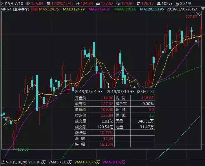 与此同时,空客集团股价却一路走高。按收盘价计算,自3月初以来,空中客车股价上涨10.77%。空中客车最新市值1110亿美元,较3月初增加110亿美元。