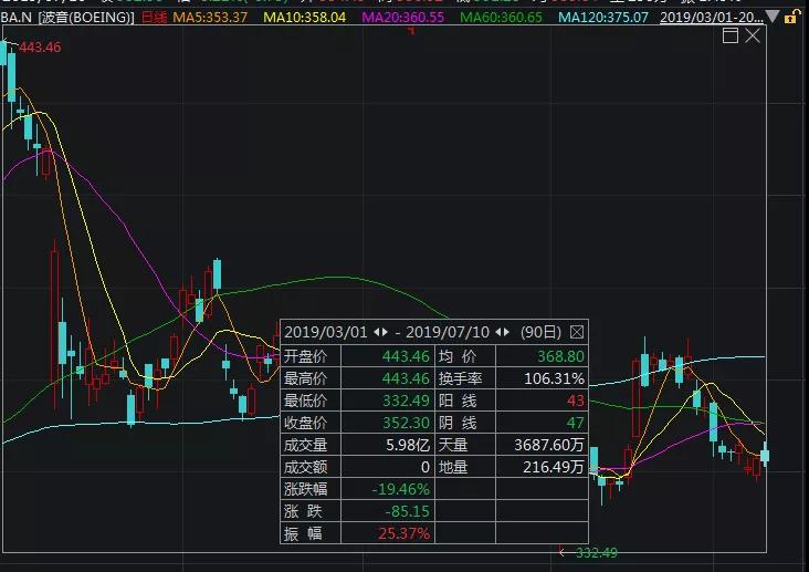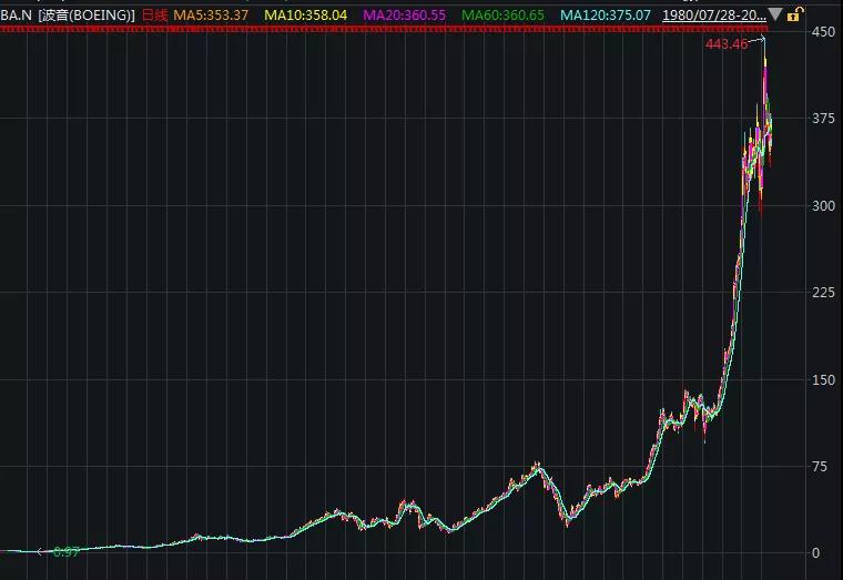 今年1月,随着波音的老对手空中客车公司在其雄心勃勃的空客A380计划上失败后,波音股价在随后两个月上升了36%,跑赢所有道指成分股,后者的反弹幅度仅为约11.6%。今年3月1日,波音股价盘中曾创出443.46美元的历史高点。