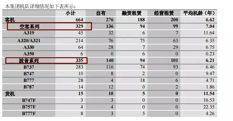 2018年年报显示,截至2018年末,国航共有客机(含公务机)669架,其中空客329架,主力机型是A320/321共214架;波音335架,主力机型是波音737,共283架。