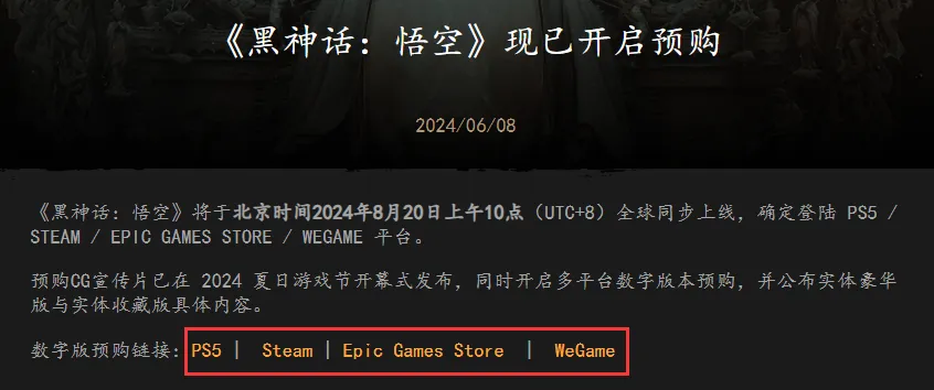 据了解,《黑神话:悟空》本次的发布平台,除了电脑端的Steam、EpicGamesStore和WeGame外,目前想玩上《黑神话:悟空》,还有一个选择是买一台索尼旗下的游戏主机PS5。